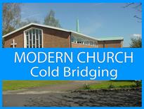 Modern church with a leaking copper roof and cold bridging